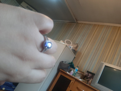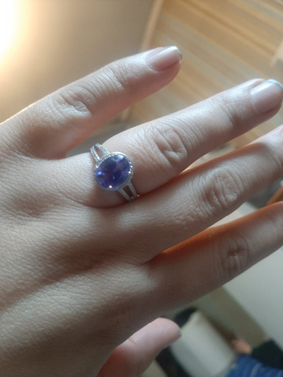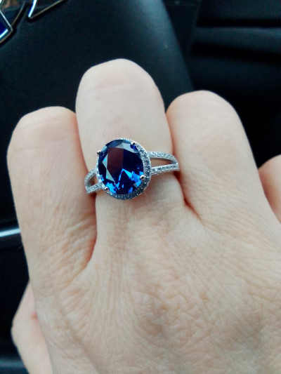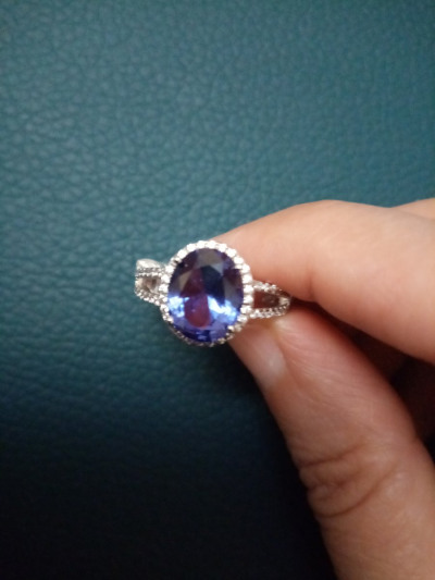 Какое-то нереально красивое кольцо золотого благородного дизайна с камнем, который не отличить от танзанита.