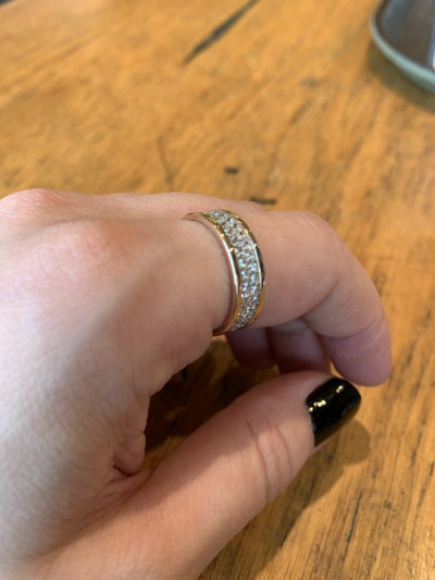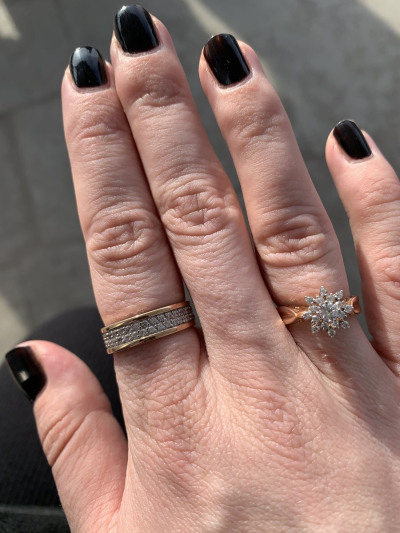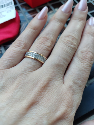 Кольцо нереально красивое ❤️ Очень стильный дизайн. Я в восторге! Любовь с первого взгляда) Смотрится дорого, но не вычурно, достаточно широкое и весомое. Комфортное в носке, тактильно очень приятное, не цепляется и не врезается. Фианиты блестят как бриллианты, качественное. Подойдет как для повседневного образа так и для вечернего выхода. К покупке всем рекомендую!