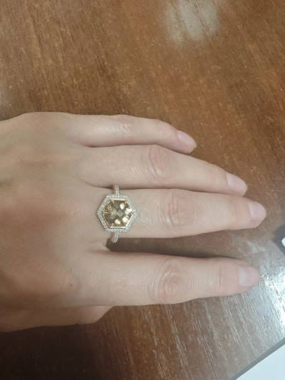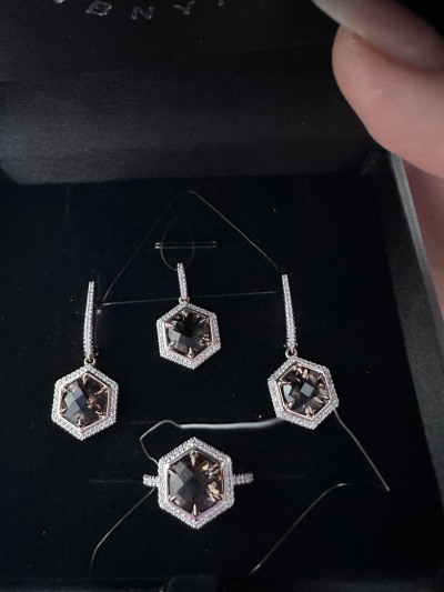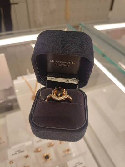 Очень красиво и изящно. Много бриллиантов и в центре красивый дымчатый кварц.