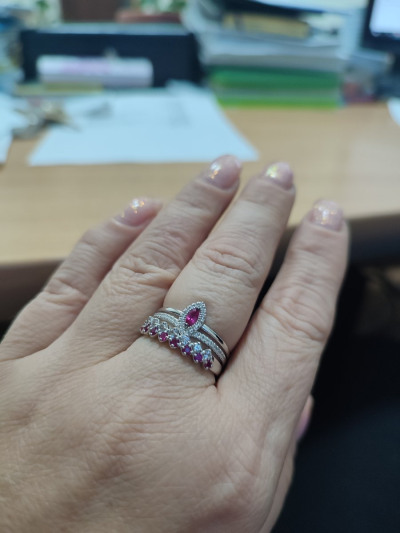 Классное колечко, покупала изначально в пару к другому колечку с рубином. Вместе смотрятся ярко и нарядно.