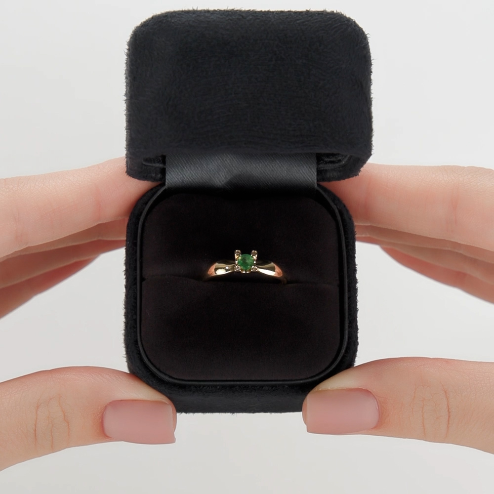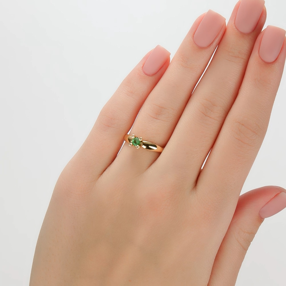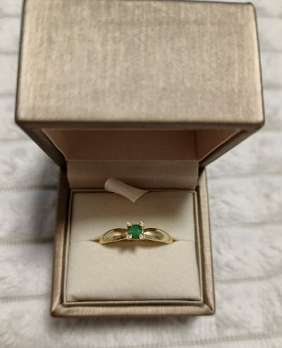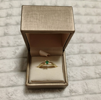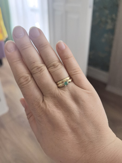 Изумруд в окружении бриллиантов в желтом золоте просто прелесть, ничего лишнего, удобно сидит, я довольна.