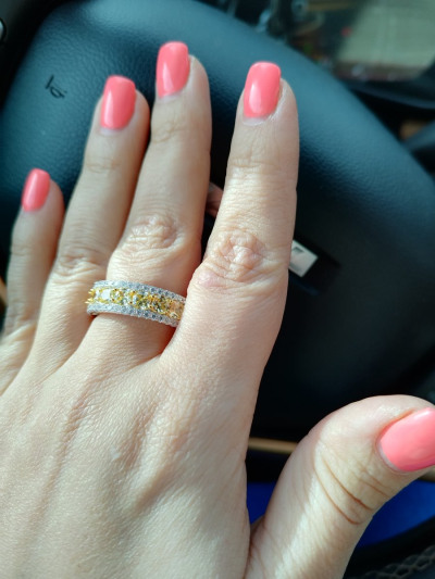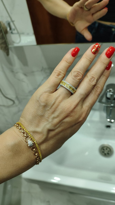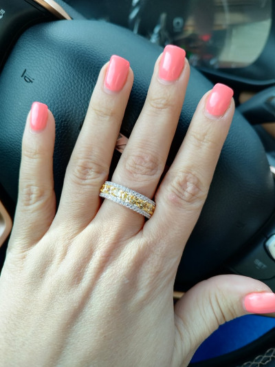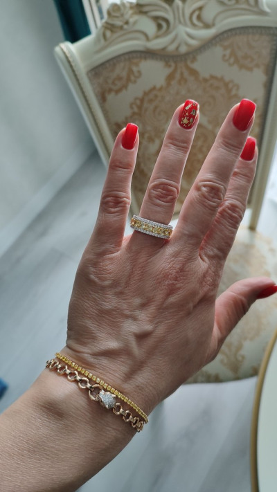 Кольцо крупное, никогда таких не носила, дорого и эффектно смотрится, очень довольна покупкой, искала с жёлтыми камушками под браслет с жёлтыми фианитами. Благодарю за такую красоту! 🥰❤
