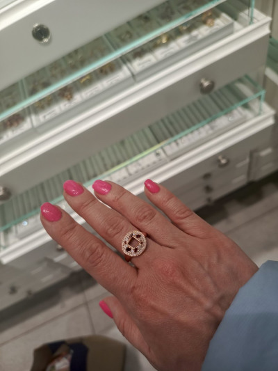 Спасибо консультанту Екатерине за терпение. Столько перемерила и серёжек и колец рядом с этим кольцом. А потом увидела , померила и не захотела снимать. Кольцо очень красивое прям как у царицы Клеопатры.