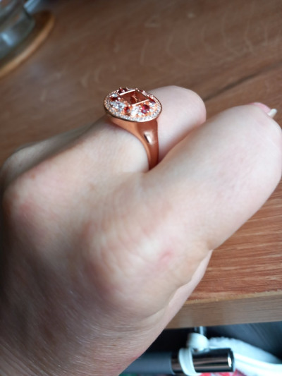 Кольцо крупное, объёмное, нарядное, думала будет плоским. Легкое и удобное, не крутится, не цепляется, не мешает, сверкает и переливается очень красиво