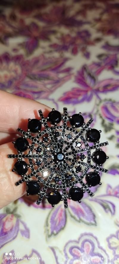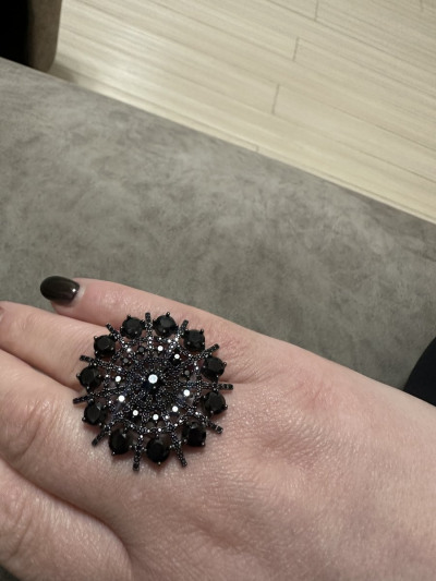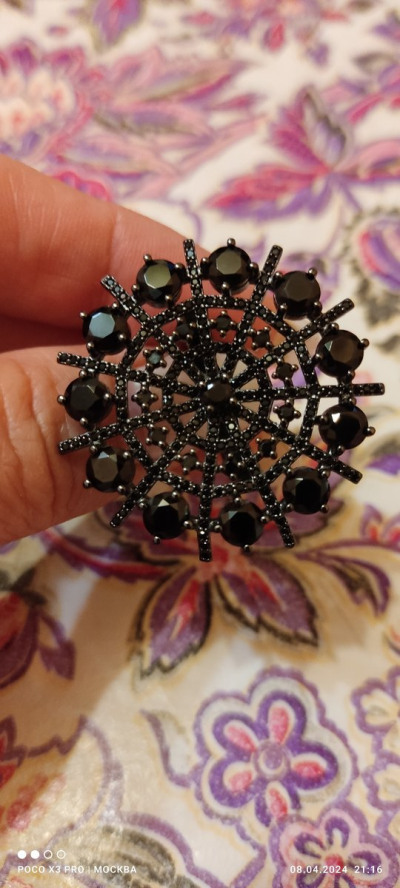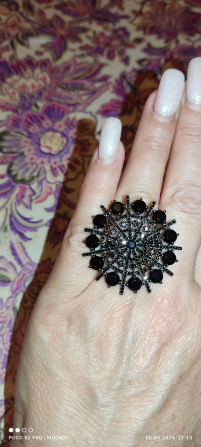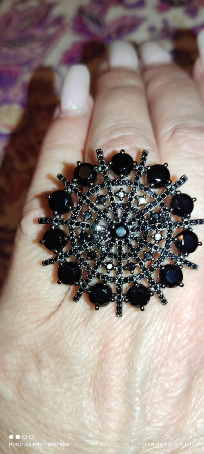 Кольцо очень огромное, яркое за счет огранки и фианитов. Смотрится вау. Супер колечко.