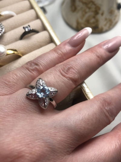 Серебряное кольцо с фианитами и топазами природными