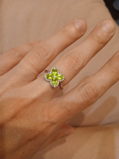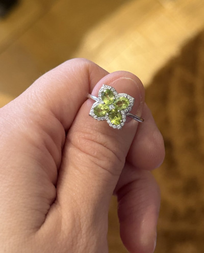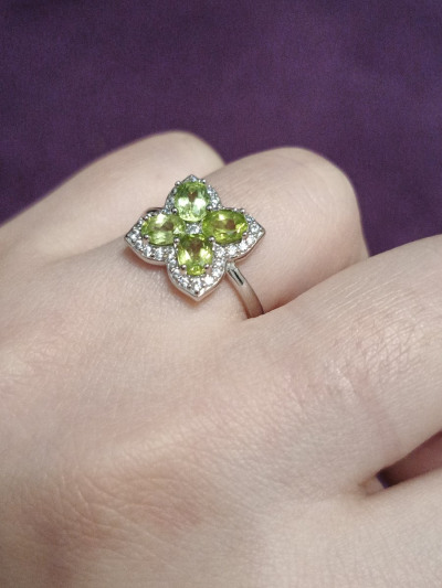 КУпила серебрянное кольцо и подвеску с фианитами и хризолитами в м-не Пассаж в Екатеринбурге. Как примерила это кольцо, все расцвело как весной, хотя на дворе начало зимы. Очень красивое кольцо, сверкает и переливается, наполняет сердце слнцем и хочется просто не снимать его. Помогала мне в выборе продавец Жанна, очень внимательная, простая в общении, доброжелательная, такая ловкая, быстрая, я ей очень благодарна за помощь и внимание.