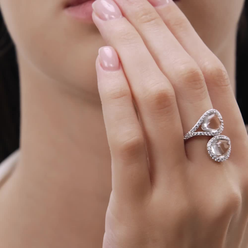 Кольцо с 2 горными хрусталями природными, 3 карат;