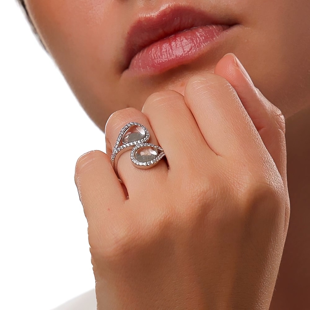 Серебряное кольцо с фианитами и горными хрусталями природными