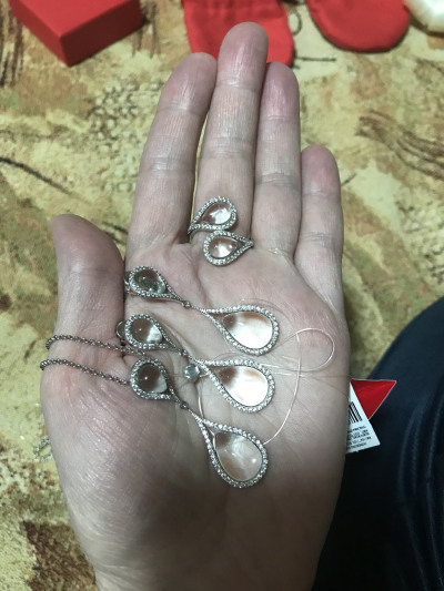 Брала кольцо, серьги и шейное украшение. Смотрится великолепно!Серьги для меня тяжеловаты, цепочку хотелось бы подлиннее, кольцо отличное! К покупке рекомендую!