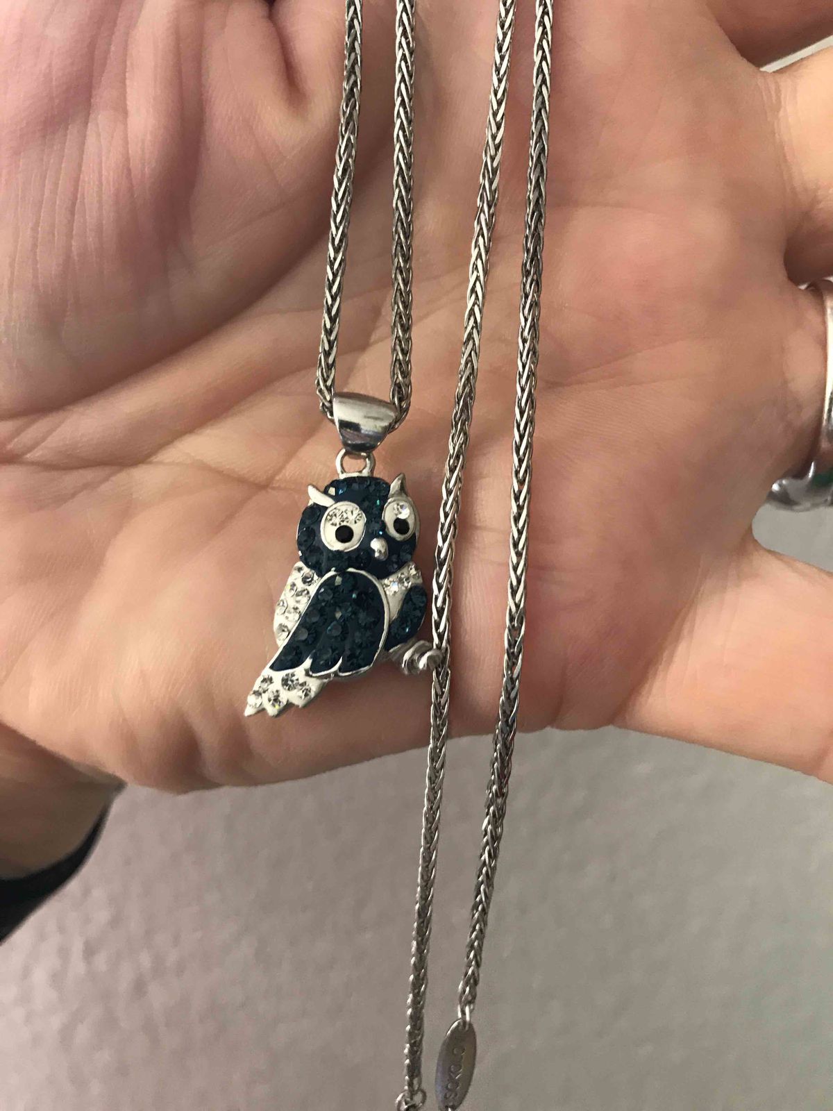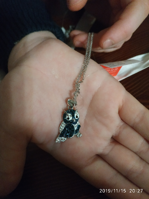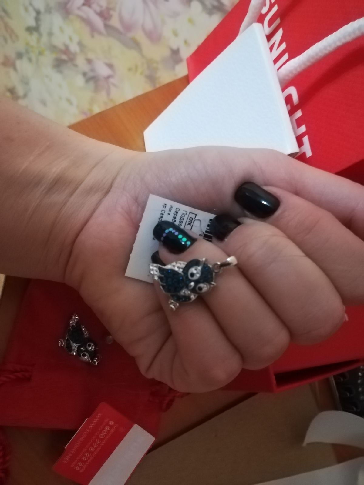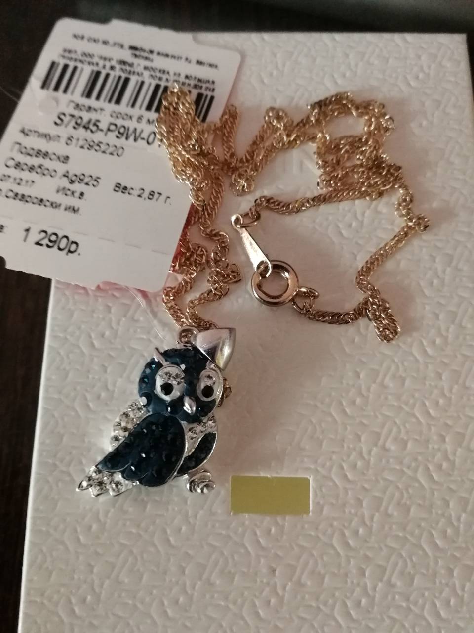 Подвеска очень красивая,сова сверкает и переливается на свету,просто 🔥.Долго на неё смотрела,наконец то купила и не жалею.