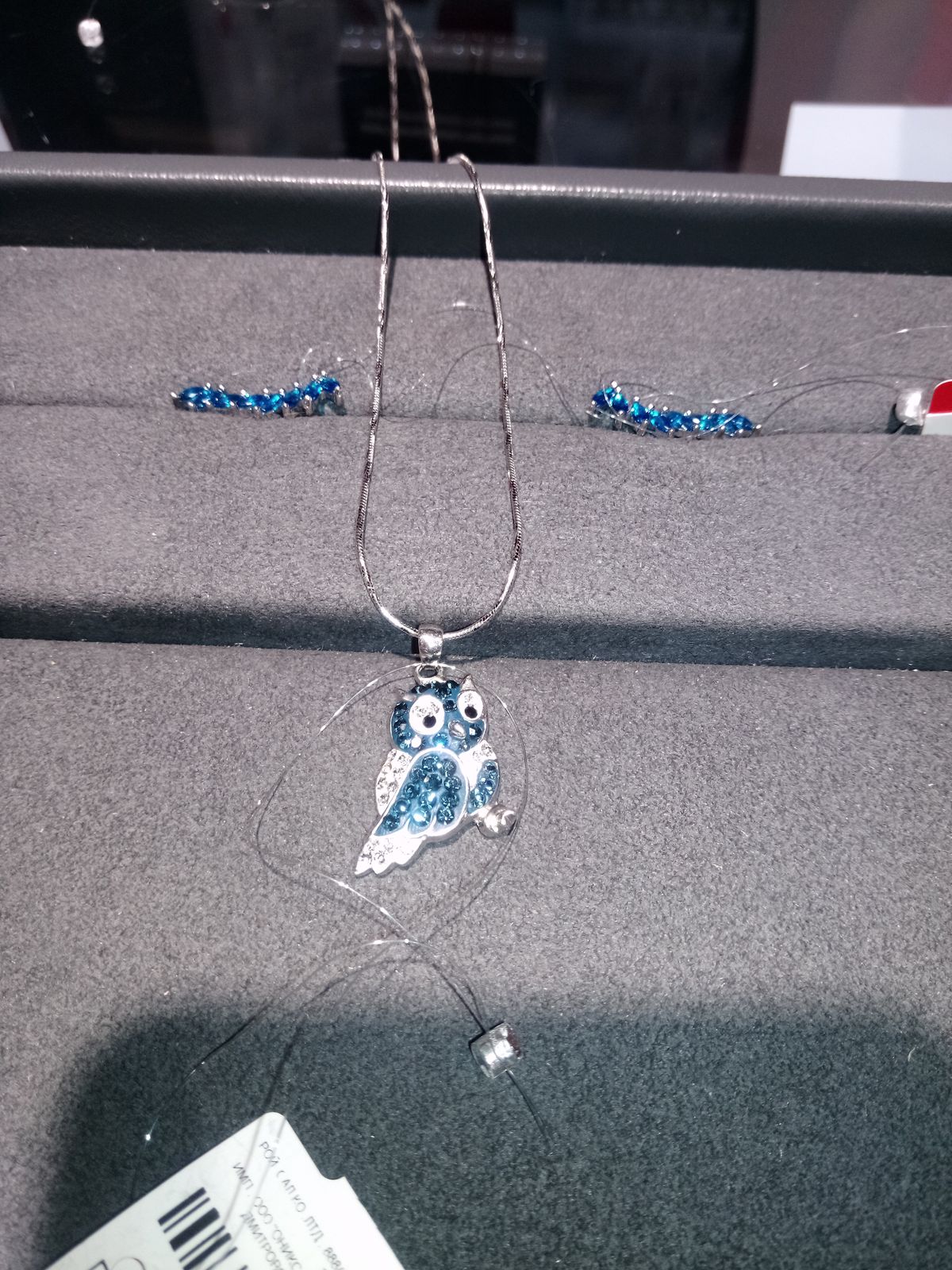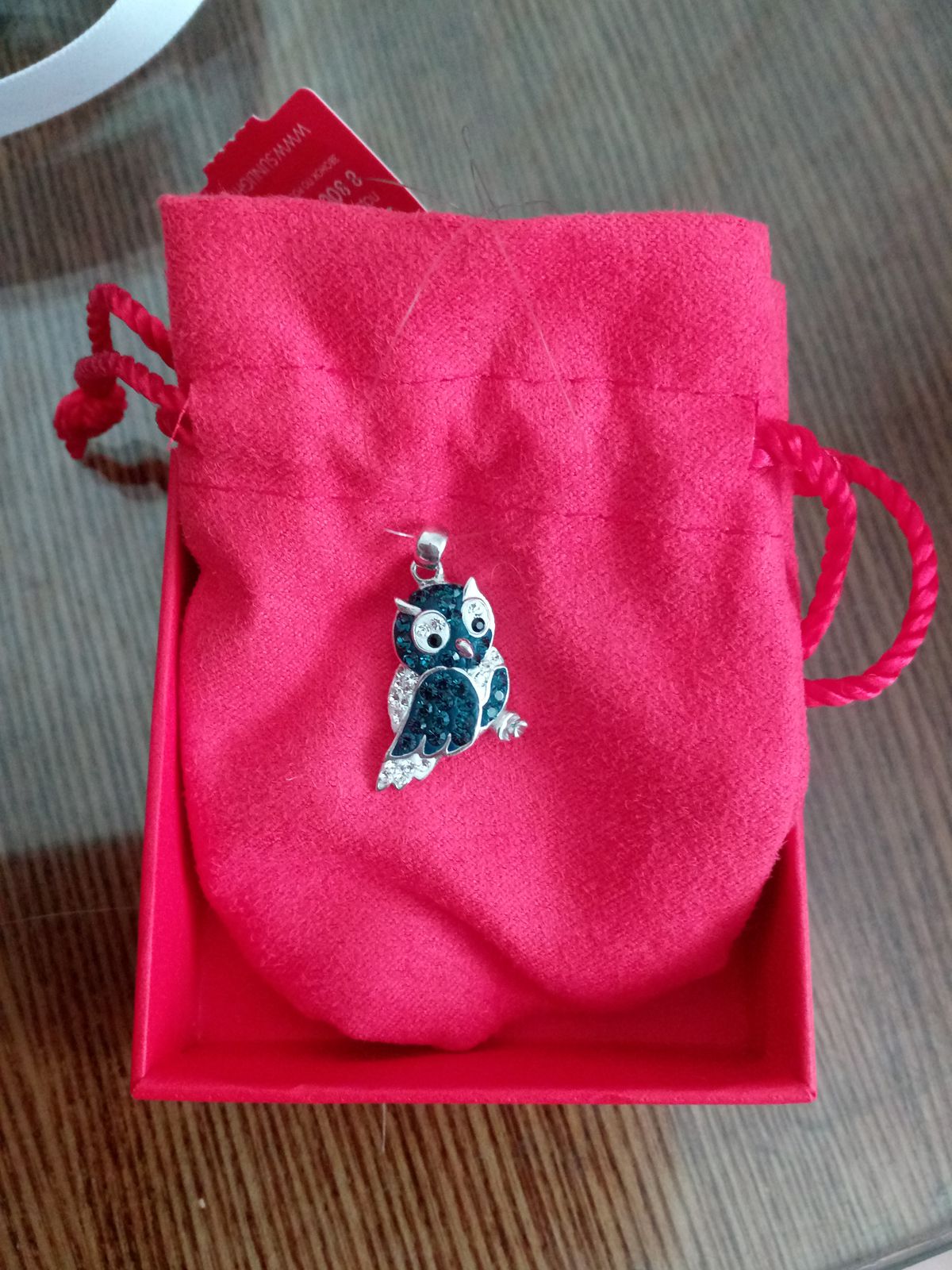 Давно хотела подвеску в форме Совы. Заказала через приложение, доставили до дверей. Сова светлее, чем на фото, скорее голубого цвета, а не синего. Но, ооочень красивая