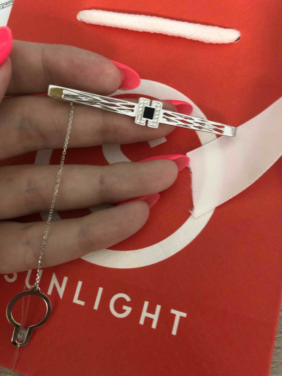 Серебряный зажим для галстука с эмалью и кубическим цирконием