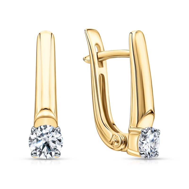 Серьги с 18 бриллиантами природными, 0.33 карат, огранка круг 57 граней, цвет 3, чистота 6, тип огранки А; 20 бриллиантами природными, 0.04 карат, огранка круг 17 граней, цвет 2, чистота 2, тип огранки А; Желтое и белое золото 585 пробы.